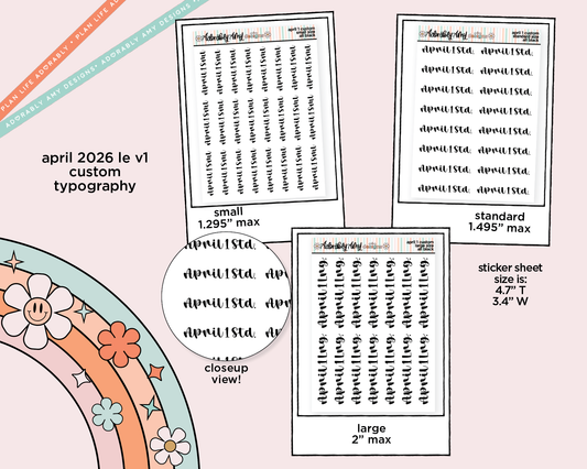 April 2026 LE Custom Typography Sticker Reminder Planner Stickers
