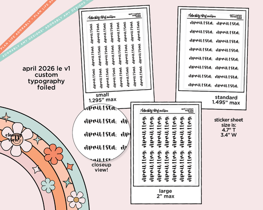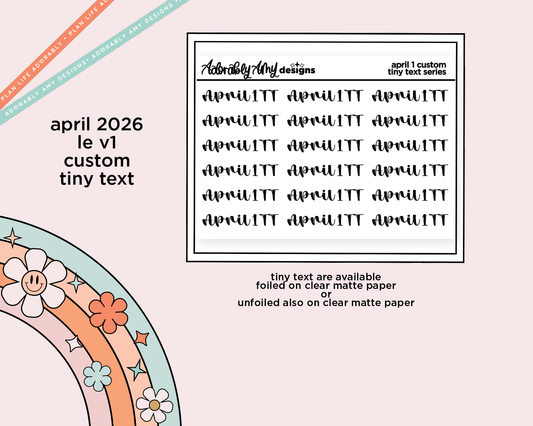 April 2026 LE Font Custom Foiled Tiny Text Sticker Sheet Planner Stickers
