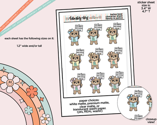 Bailee Bear Protestor - Liberty and Just Decoration Planner Stickers