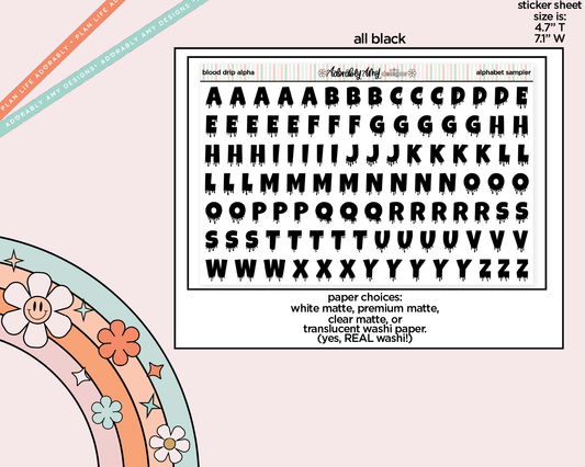 Blood Drip Alphabet Stickers Deco Typography Sampler Planner Stickers