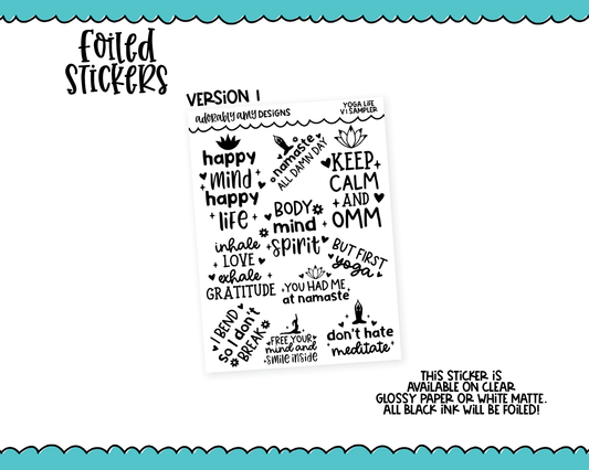 Foiled Yoga Life Quote Samplers V1, V2 and V3 Planner Stickers for any Planner or Insert