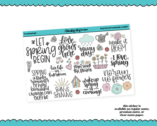 Hand Lettered Let Spring Begin Typography Sampler Planner Stickers for any Planner or Insert