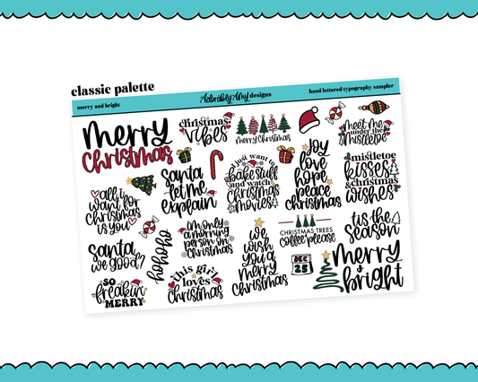 Hand Lettered Merry & Bright Typography Sampler Planner Stickers for any Planner or Insert