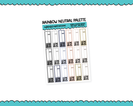 Hobo Cousin Rainbow Bill Due Reminder Planner Stickers for Hobo Cousin or any Planner or Insert