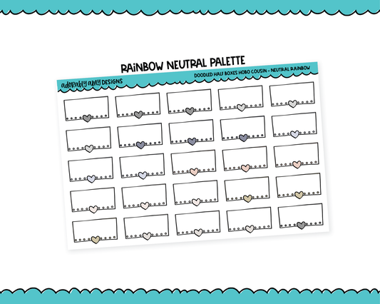 Hobo Cousin Rainbow Doodle Heart Half Box Planner Stickers for Hobo Cousin or any Planner or Insert