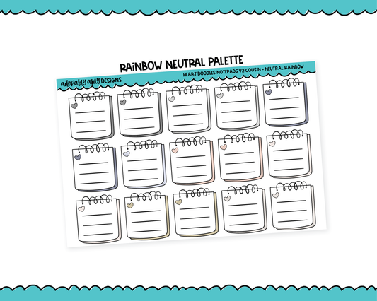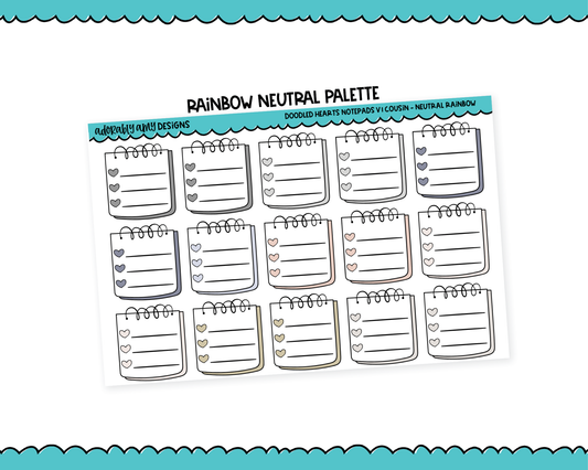 Hobo Cousin Rainbow Doodled Hearts Notepads List Boxes V1 Planner Stickers for Hobo Cousin or any Planner or Insert