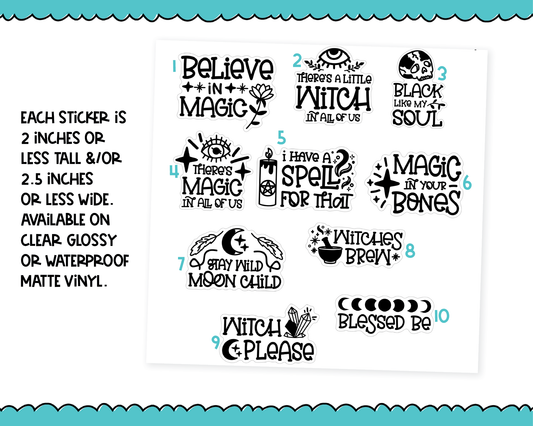 Large Diecut Sticker Flakes - Witch Magic Quotes Planner Stickers for any Planner or Insert