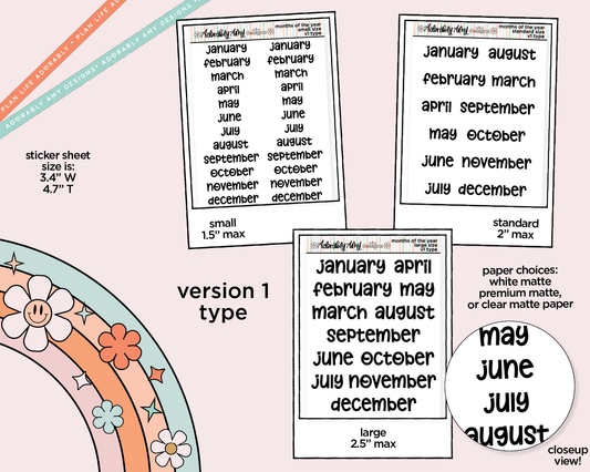 Months of the Year 2025 Planner Stickers for any Planner or Insert