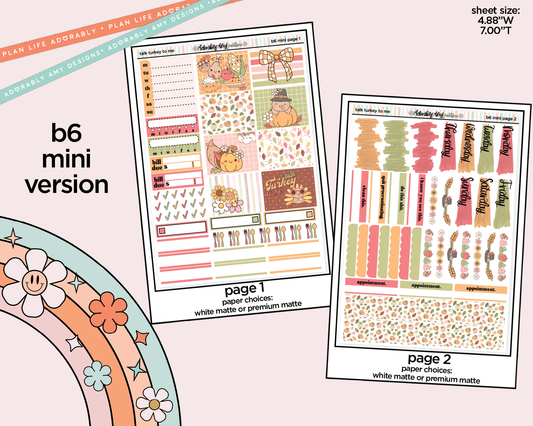 Mini B6 Talk Turkey to Me Planner Sticker Kit sized for ANY Vertical Insert