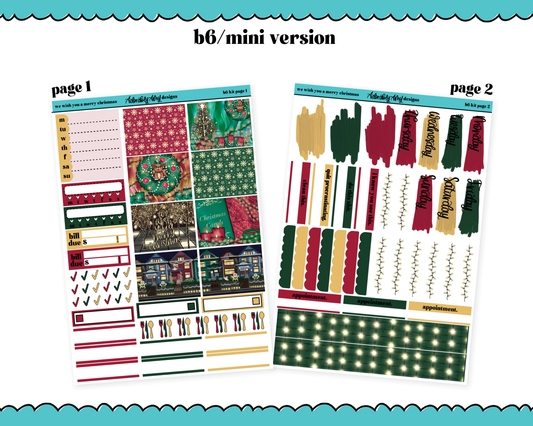 Mini B6 We Wish You a Merry Christmas Themed Weekly Planner Sticker Kit sized for ANY Vertical Insert