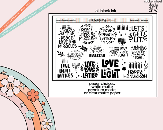 Peace Love & Miracles Deco Typography Sampler Planner Stickers