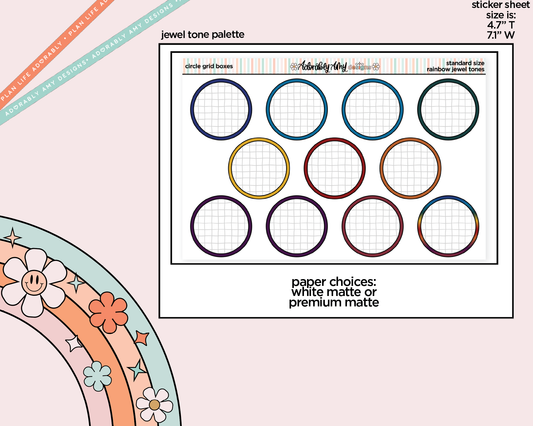 Rainbow Circle Grid Boxes Standard Stickers for any Planner or Insert
