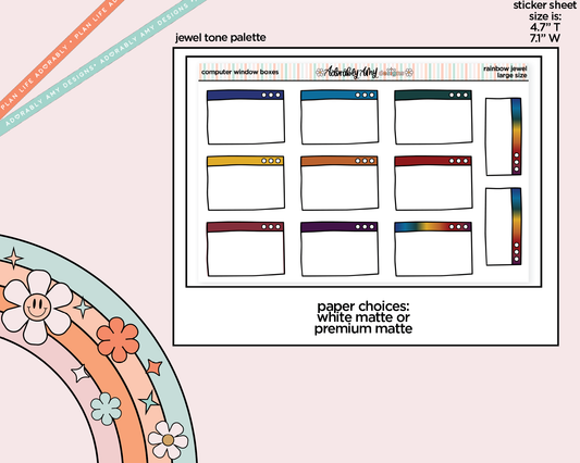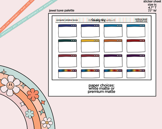 Rainbow Computer Window Boxes Standard Stickers for any Standard Size Planner or Insert