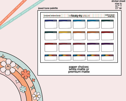 Rainbow Computer Window Boxes Small Planner Stickers for Hobo Cousin or any Planner or Insert