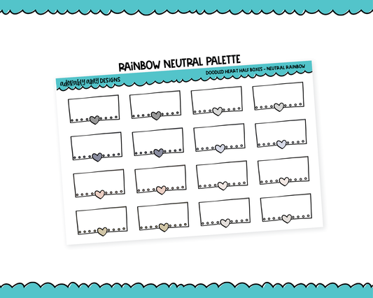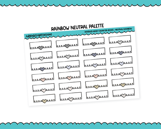 Rainbow Doodled Heart Label Quarter Box Planner Stickers for any Planner or Insert