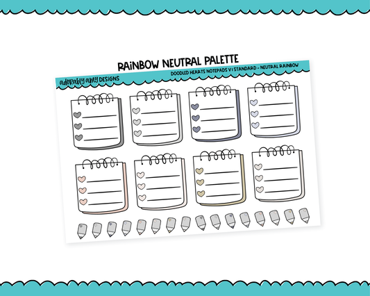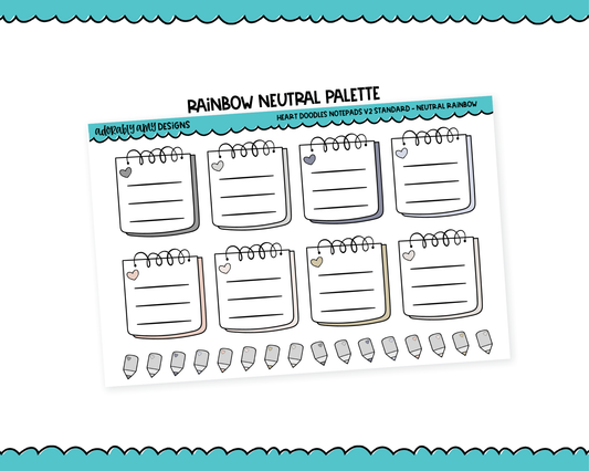 Rainbow Doodled Hearts Notepad V2 List Boxes Standard Size Stickers for any Planner or Insert