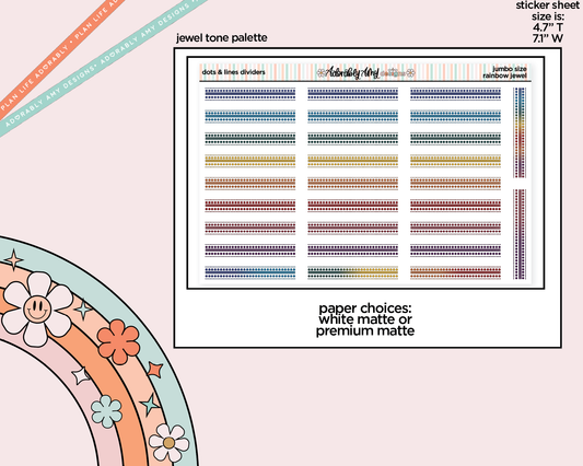 Rainbow Dots & Lines Dividers Large/Jumbo Stickers for any Planner or Insert