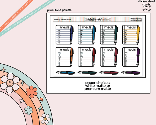 Rainbow Doodled Weekly Meal Trackers Standard Size Stickers