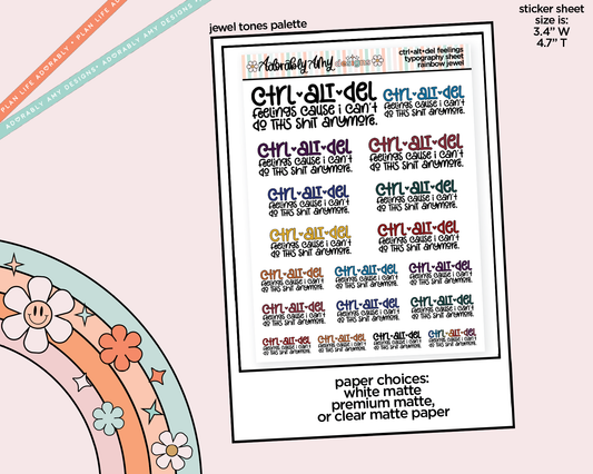 Rainbow or Black Ctrl-Alt-Del Feelings Typography Planner Stickers for any Planner or Insert