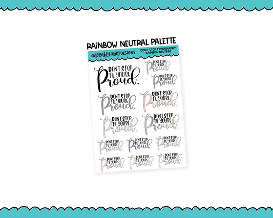 Rainbow or Black Don't Stop Til You're Proud Typography Planner Stickers for any Planner or Insert