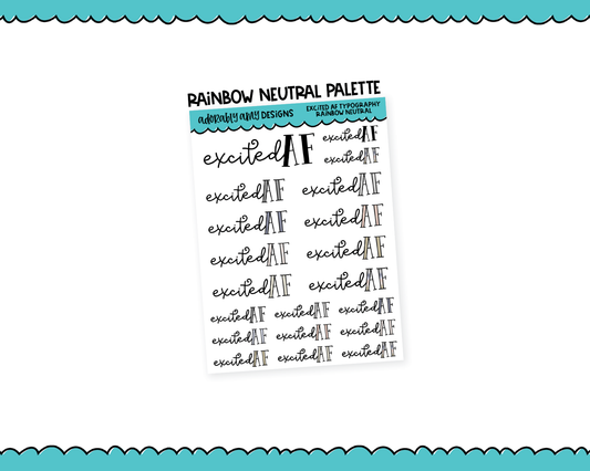 Rainbow or Black Excited AF Typography Planner Stickers for any Planner or Insert