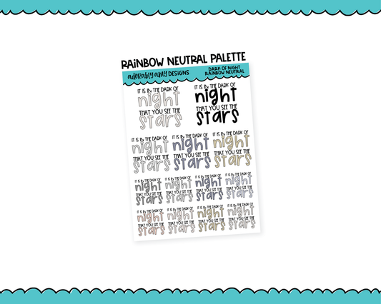 Rainbow or Black Dark of Night See Stars Motivational Typography Planner Stickers for any Planner or Insert