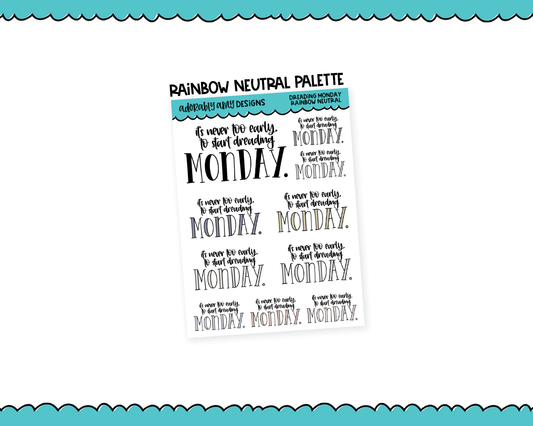 Rainbow or Black Dreading Monday Typography Planner Stickers for any Planner or Insert