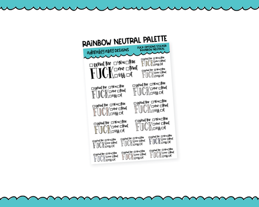 Rainbow or Black F*ck Options Typography Planner Stickers for any Planner or Insert