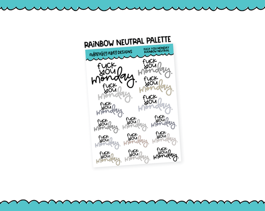 Rainbow or Black F*ck You Monday Snarky Typography Planner Stickers for any Planner or Insert
