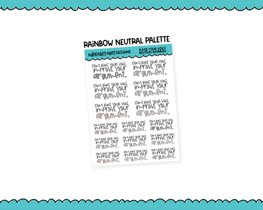 Rainbow or Black Don't Raise Your Voice, Improve Your Argument Typography Planner Stickers for any Planner or Insert