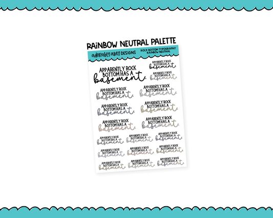Rainbow or Black Rock Bottom Snarky Typography Planner Stickers for any Planner or Insert