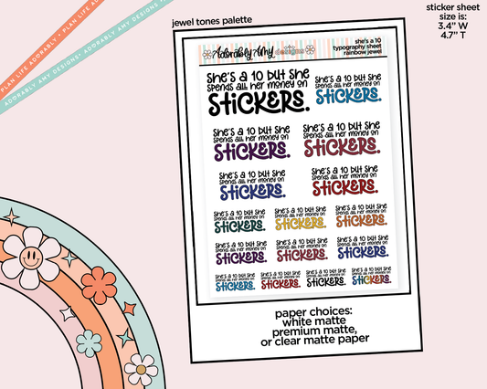 Rainbow or Black She's a 10 but She Spends All Her Money on Stickers Typography Planner Stickers for any Planner or Insert