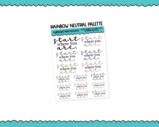 Rainbow or Black Start Where You Are Typography Planner Stickers for any Planner or Insert