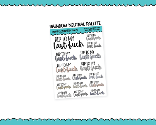 Rainbow or Black RIP To My Last Fuck Snarky Typography Planner Stickers for any Planner or Insert