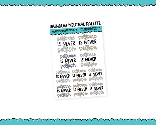 Rainbow or Black Selfcare is Never Selfish Motivational Typography Planner Stickers for any Planner or Insert