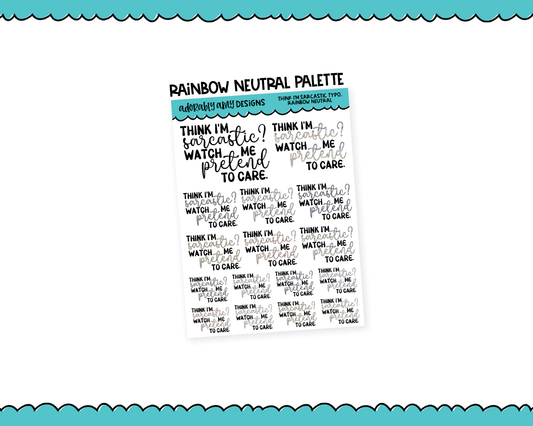 Rainbow or Black Think I'm Sarcastic? Typography Planner Stickers for any Planner or Insert