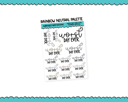 Rainbow or Black Worst Day Ever Snarky Typography Planner Stickers for any Planner or Insert