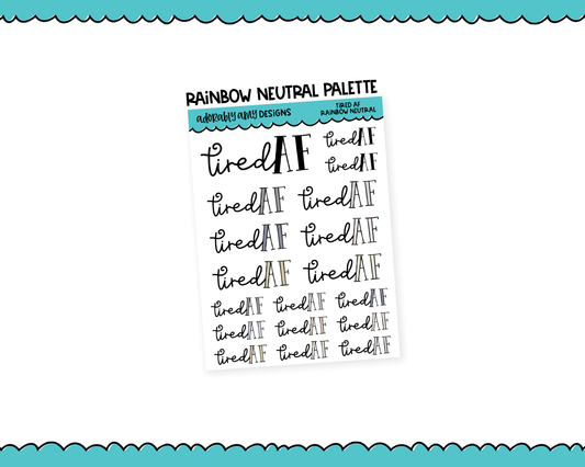 Rainbow or Black Tired AF Snarky Typography Planner Stickers for any Planner or Insert