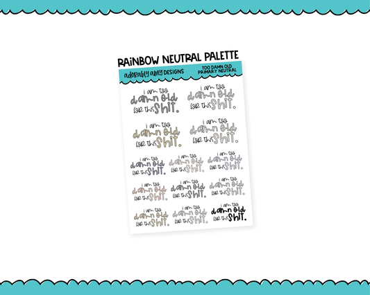 Rainbow or Black Too Damn Old for This Shit Snarky Typography Planner Stickers for any Planner or Insert