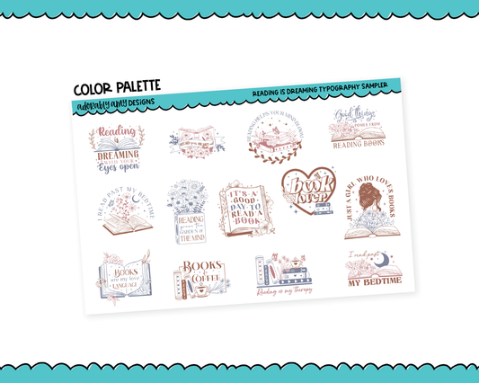 Reading is Dreaming Book and Reading Themed Typography Sampler Planner Stickers for any Planner or Insert
