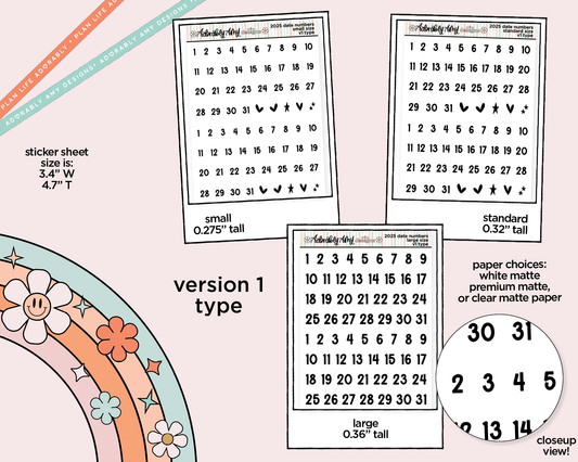 Date Numbers 2025 Planner Stickers for any Planner or Insert