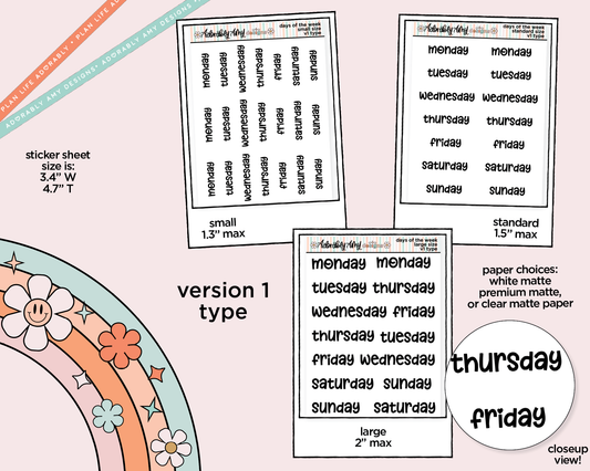 Days of the Week 2025 Planner Stickers for any Planner or Insert