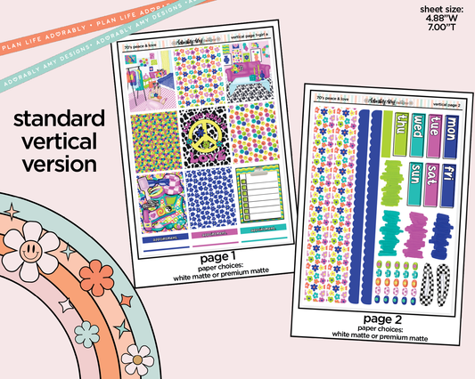Vertical 70's Peace & Love Weekly Sticker Kit for Vertical Standard Size Planners or Insert