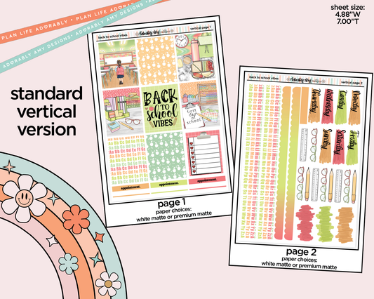 Vertical Back to School Vibes Weekly Sticker Kit for Vertical Standard Size Planners or Insert