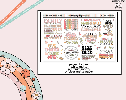 Turkey, Gravy, Beans and Rolls, Let Me See that Casserole Deco Typography Sampler Planner Stickers