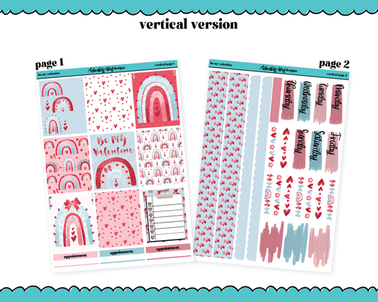 Vertical Be My Valentine Watercolor Planner Sticker Kit for Vertical Standard Size Planners or Inserts