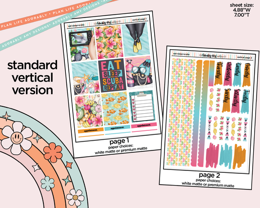Vertical Eat Sleep Scuba Weekly Sticker Kit for Vertical Standard Size Planners or Insert