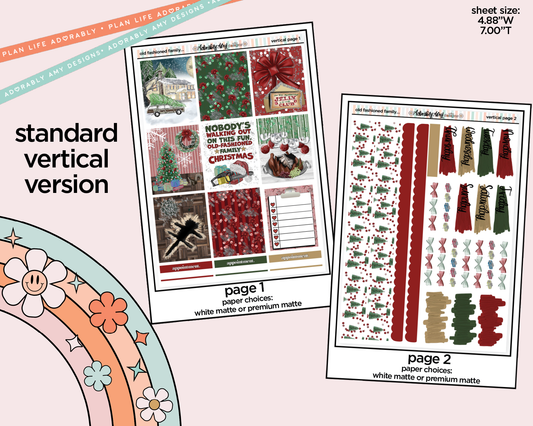 Vertical Old Fashioned Family Christmas Weekly Sticker Kit for Vertical Standard Size Planners or Insert