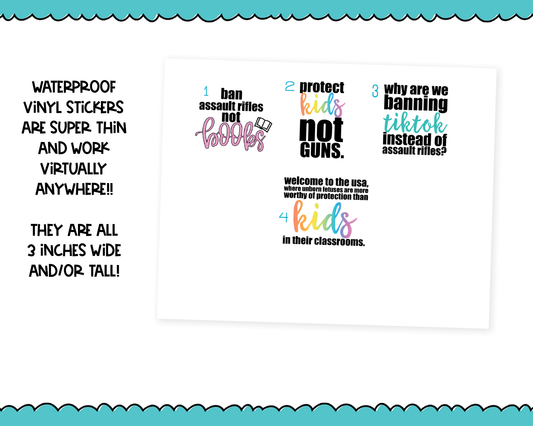 Waterproof Vinyl Large Diecut Stickers - Gun Control Quotes