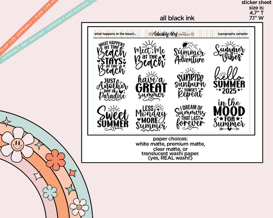 What Happens on the Beach Summer Deco Typography Sampler Planner Stickers